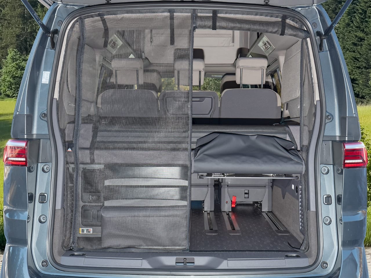 Profitez de votre California Beach Camper hayon ouvert sans insectes ! ? La moustiquaire FLYOUT BRANDRUP pour hayon du VW T7 California Beach Camper vous offre une protection optimale contre les insectes tout en préservant un accès total à votre cuisine arrière, vos rangements et votre FLEXBAG. Vivez votre vanlife en toute tranquillité.