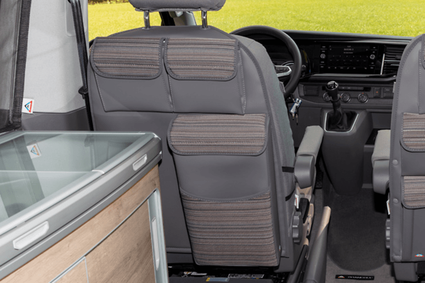 Les Dos de siège pour Multivan, California Beach et Grand California sont équipés d’une MAXI Multibox centrale.