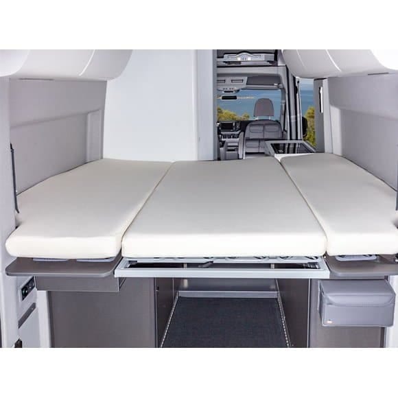 Le drap-housse est spécialement conçu pour le lit inférieur du Volkswagen Grand California 600 afin de permettre une manipulation aisée avec des housses pour chaque matelas.