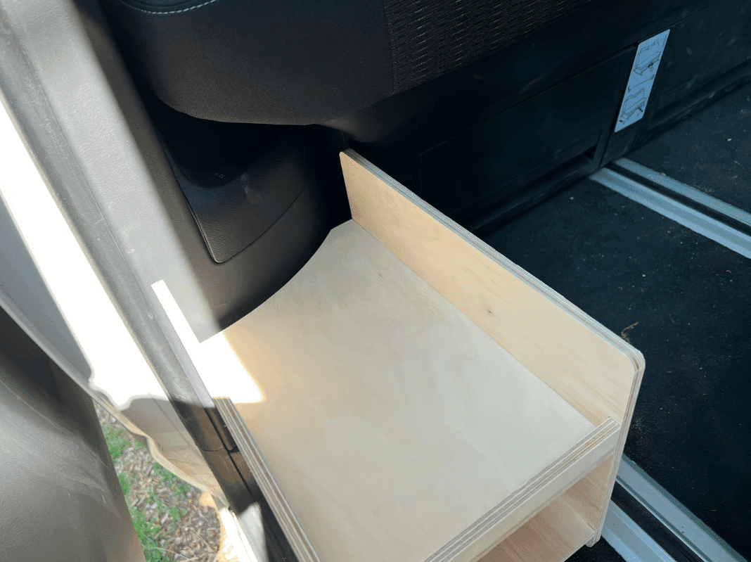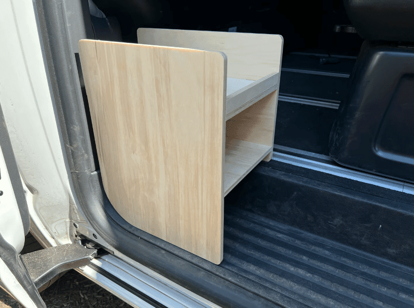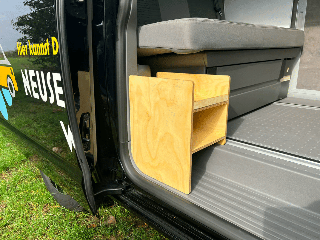 Cette étagère pratique au seuil d’entrée de votre van offre un rangement intelligent pour vos chaussures. Fabriquée en multiplex bouleau massif par VAN-ZUBEHÖR, elle transforme un espace inutilisé en solution de rangement élégante.