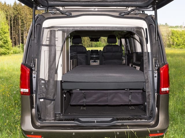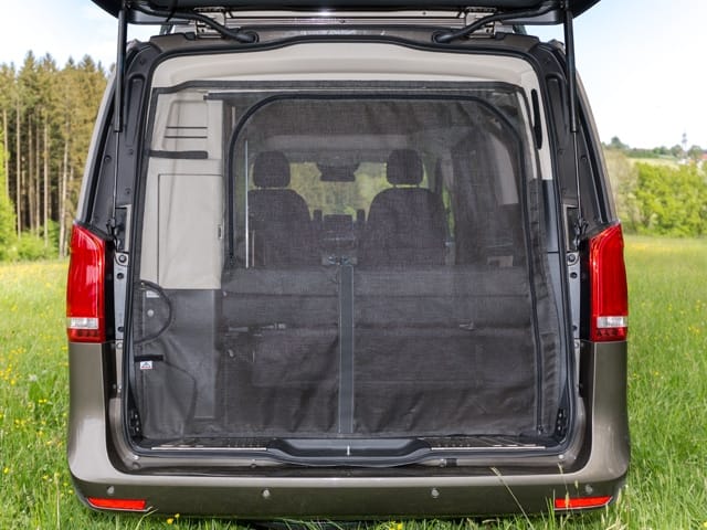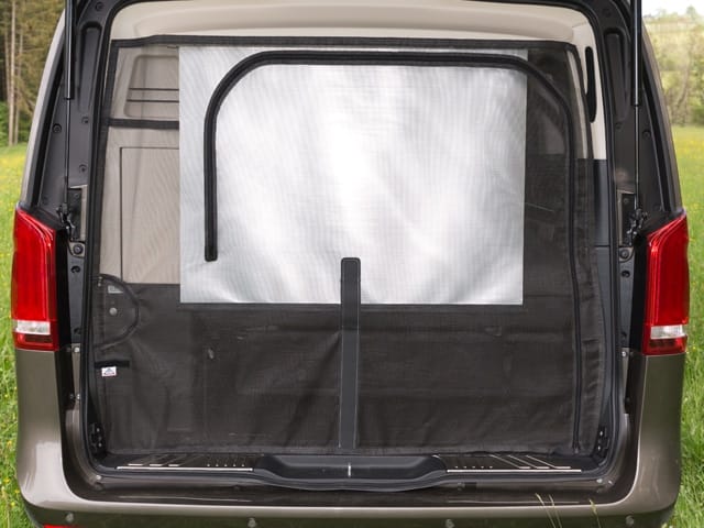 C’est très pratique en camping et au quotidien : la moustiquaire peut rester en place dans le véhicule parce qu’elle ne gêne pas.Evidemment cette moustiquaire FLYOUT est aussi étanche sur tout son pourtour, grâce à la fixation contact auto-agrippante exclusive développée spécialement pour les revêtements Mercedes-Benz, de très bonne adhérence.