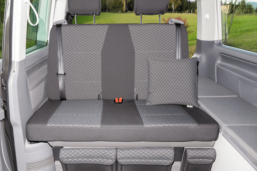 Housses de banquette arrière 2 places arrière Volkswagen California T5/T6/T6.1 Beach & Multivan – Design Quadratic / Titanium Black