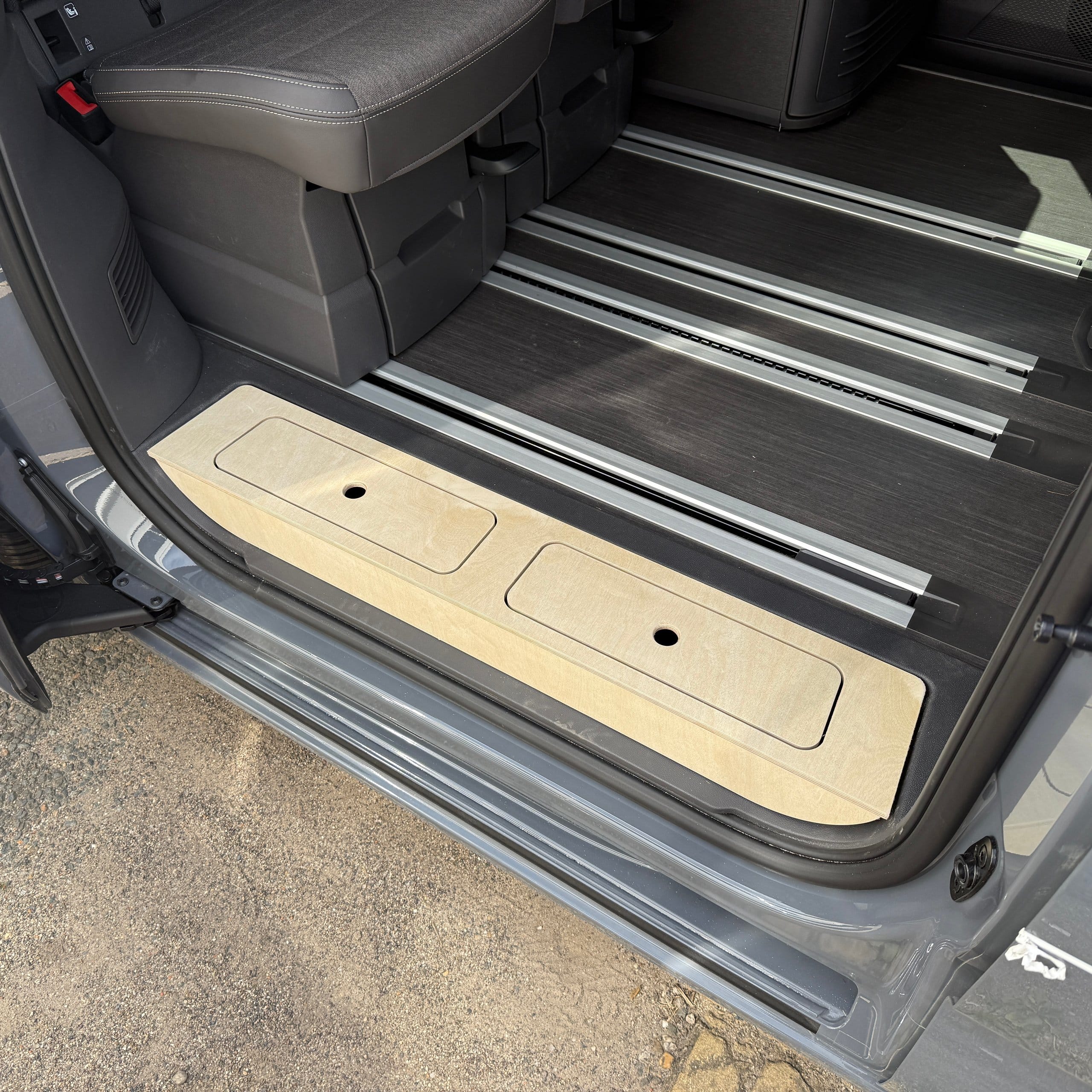 Cet insert transforme la marche d’entrée de votre California T7 en espace de rangement intelligent avec une protection renforcée contre l’humidité. Fabriqué en multiplex bouleau massif et scellé à l’huile de lin par VAN-ZUBEHÖR.