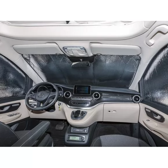 Isolation intérieure pour la vitre latérale gauche de l’espace passagers arrière des Mercedes Marco Polo Class V depuis 2014, et des Class V depuis 2014 avec porte coulissante et garnitures intérieures.