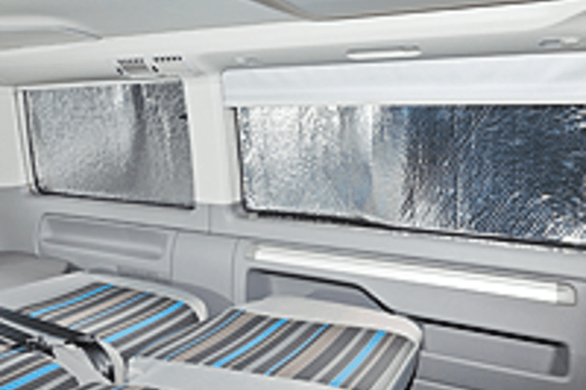 - Isolation intérieure pour la vitre latérale gauche de l’espace passagers arrière des T5/T6/T6.1/T7 et ID-Buzz Volkswagen avec garnitures intérieures.