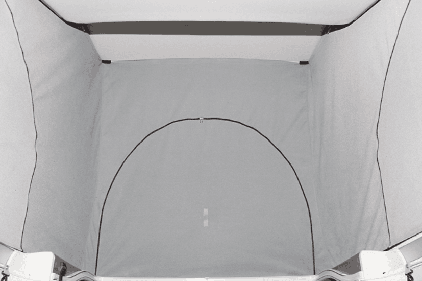 - Trois grandes fenêtres avec fermeture à glissière sur trois côtés. Lorsqu’il y a une grande ouverture frontale, il est aussi possible de offrir ISO-TOP complètement.