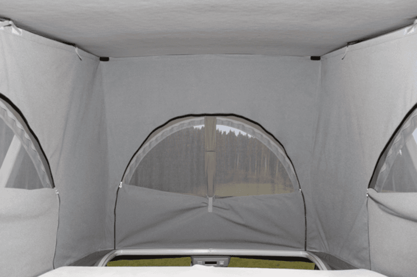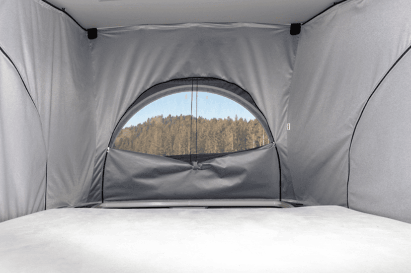 - La membrane ISO-TOP protège également autant que possible le matelas de l’humidité si l’on désire refermer le toit alors qu’il pleut et que le soufflet est mouillé. La membrane envers est noire pour assurer un meilleur sommeil.
