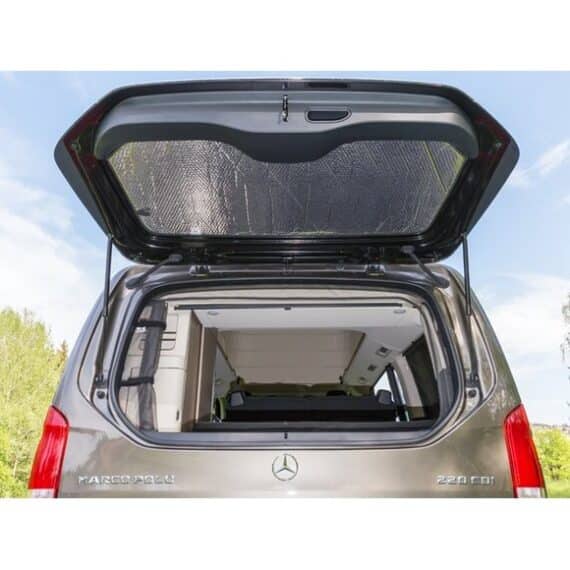 Isolation intérieure pour la vitre du hayon arrière dans l’espace coffre des Mercedes Class V depuis 2014 avec garnitures intérieures.
