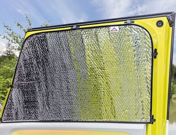 ISOLITE assure aux fenêtres conducteur et passager l’isolation résolument la meilleure. Contrairement aux pare-soleil classiques simplement suspendus, ISOLITE se fixe sur trois côtés dans l’encadrement de la fenêtre. L’air emprisonné entre la vitre et le panneau ISOLITE ne peut ni circuler ni s’échapper ⛺.