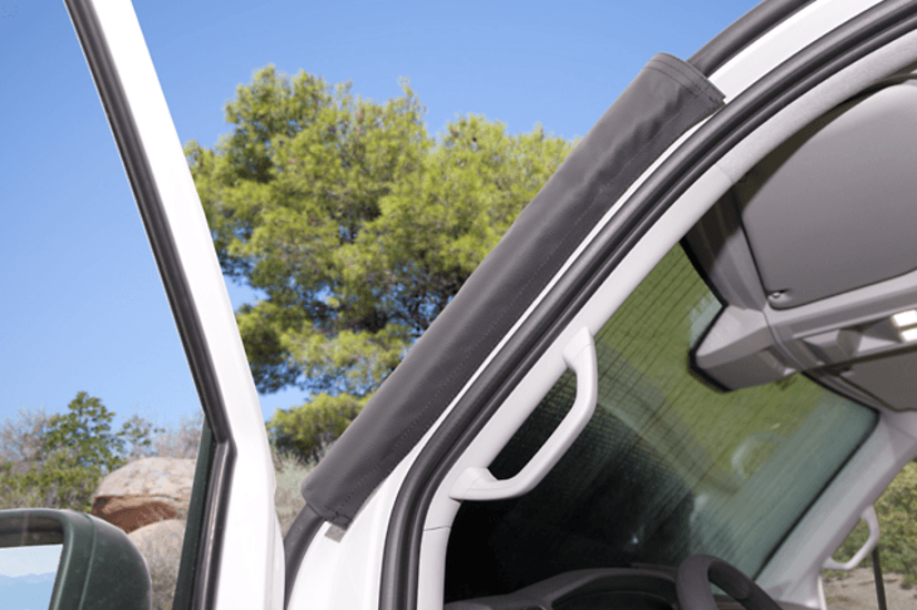 En plein été, l’utilisation supplémentaire d’un ISOLITE Extreme à l’intérieur offre à l’espace conducteur une température comparable à celle que l’on a à l’ombre !- Sur les T4 : L’écran ISOLITE Outdoor se case dans n’importe quel toit relevable.