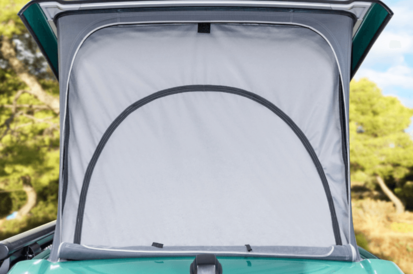 - La membrane ISO-TOP protège également autant que possible le matelas de l’humidité si l’on désire refermer le toit alors qu’il pleut et que le soufflet est mouillé.