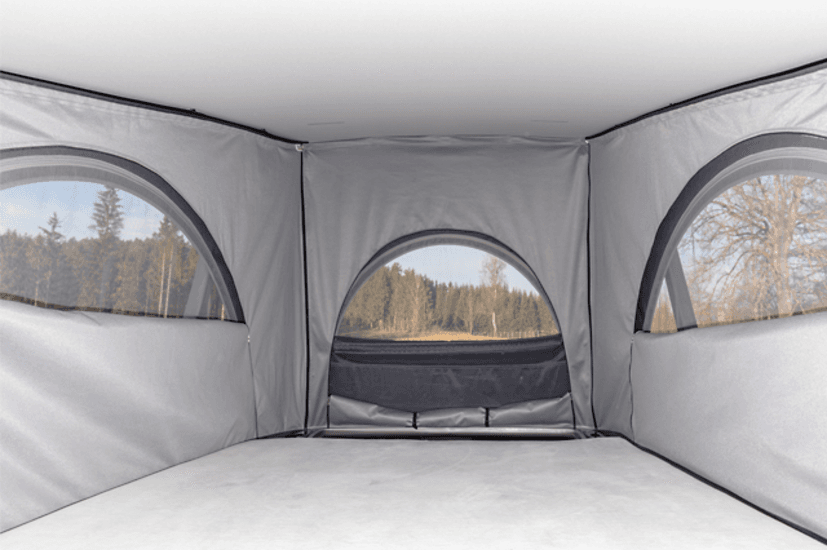 - Trois grandes fenêtres avec fermeture à glissière permettent d’accéder aux fenêtres d’origine de la toile du toit et/ou d’aérer l’entre 2 parois.