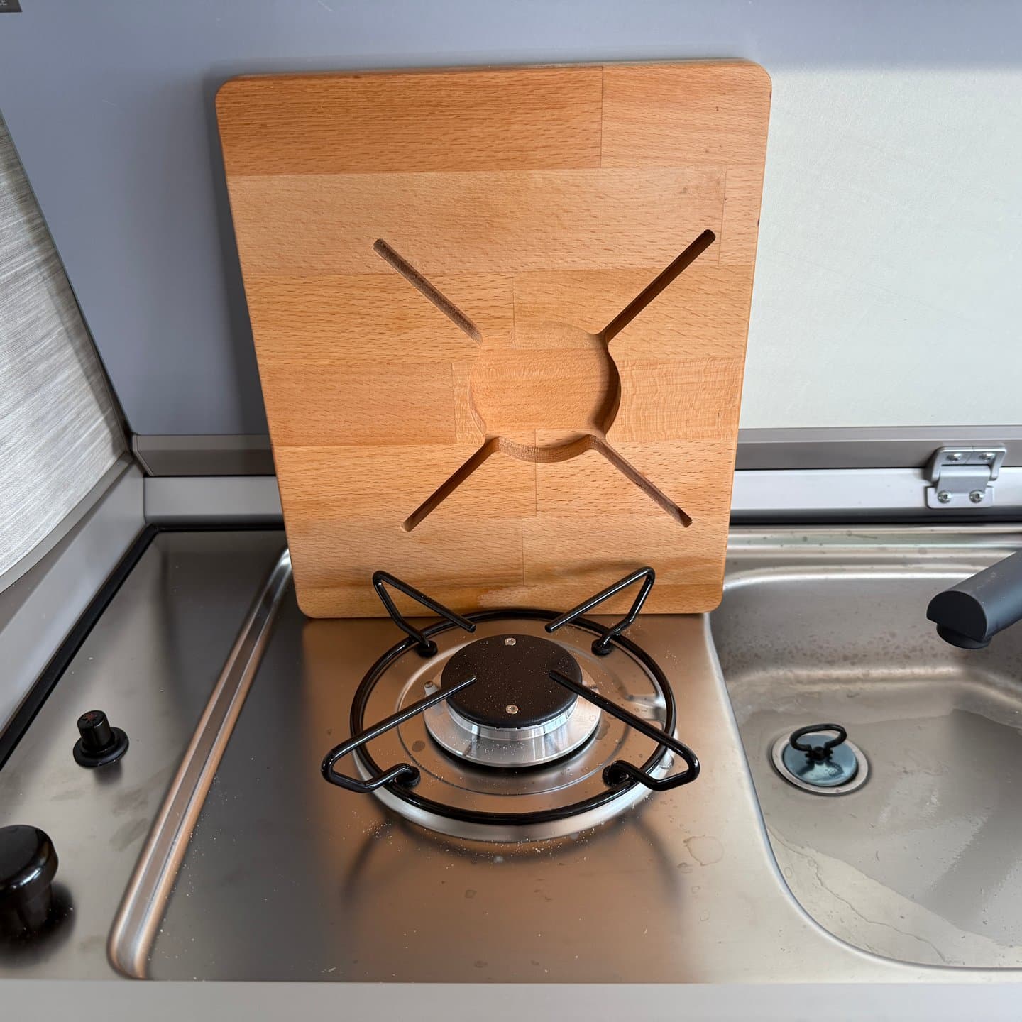 - ✅ Évier toujours accessibleL’évier reste utilisable même avec la planche installée sur le réchaud.
