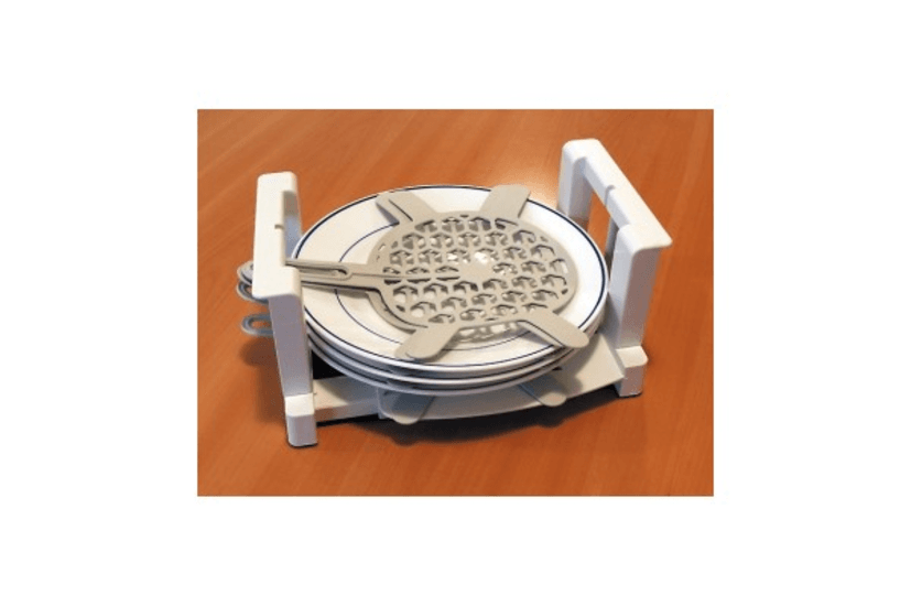 - Réglable en fonction de la taille des assiettes, il peut s’adapter à des assiettes de diamètres de 20 à 30 cm.