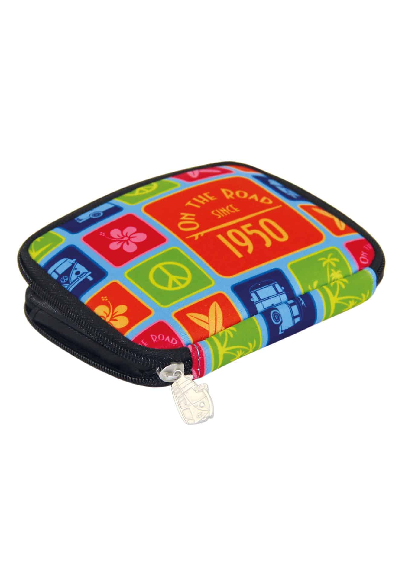 - Ce portefeuille amusant et pratique en néoprène dispose d’un design rétro coloré célébrant l’esprit vintage du bus VW T1.